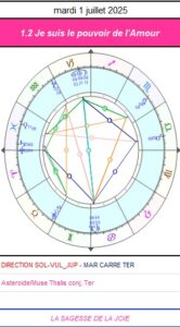 À cet égard, le Ciel des causes nous offre aujourd’hui la possibilité de célébrer un événement lumineux : l’alignement héliocentrique entre notre chère Terre et l’astéroïde */Muse Thalie dans l’espace conditionné par l’énergie du Capricorne, la Porte des Dieux, le signe considéré comme le chemin de l’ascension des âmes vers leur demeure céleste, ainsi que le lieu symbolique où la séparation de la matière prend la forme de l’initiation. Pour l’ère du Verseau, c’est cette constellation qui transmet le 7ème Rayon qui favorise l’initiation et la défaite du matérialisme.
